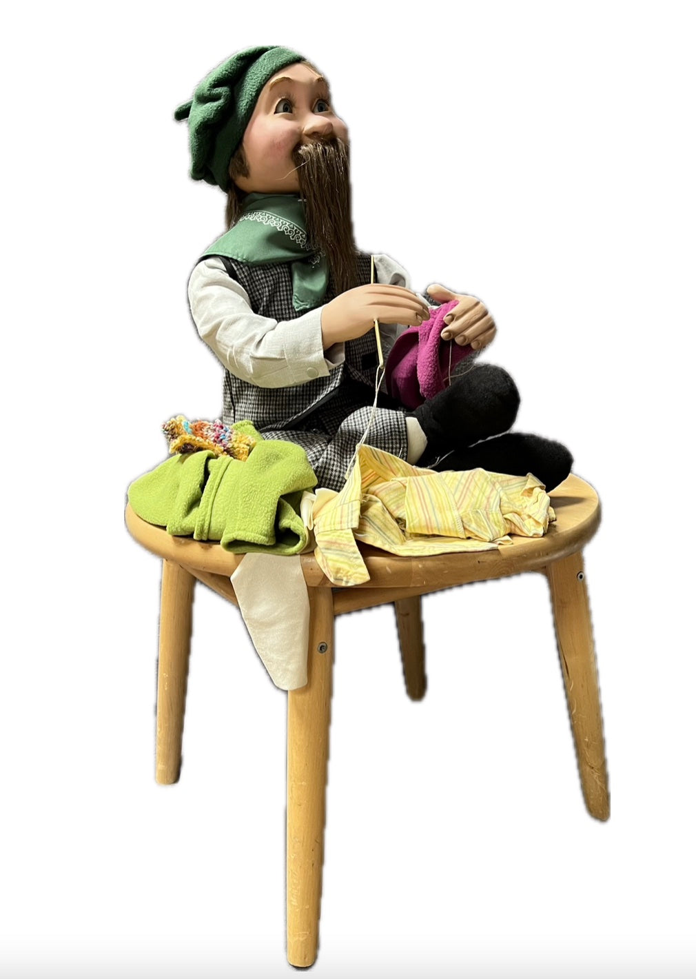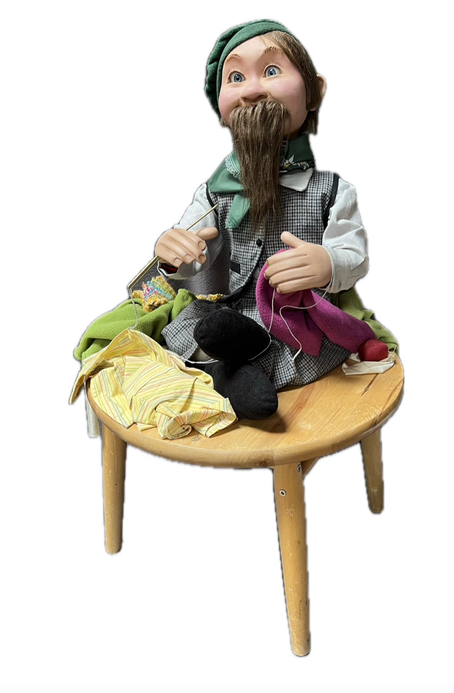 Ausstattung: Tisch mit Nähutensilien.