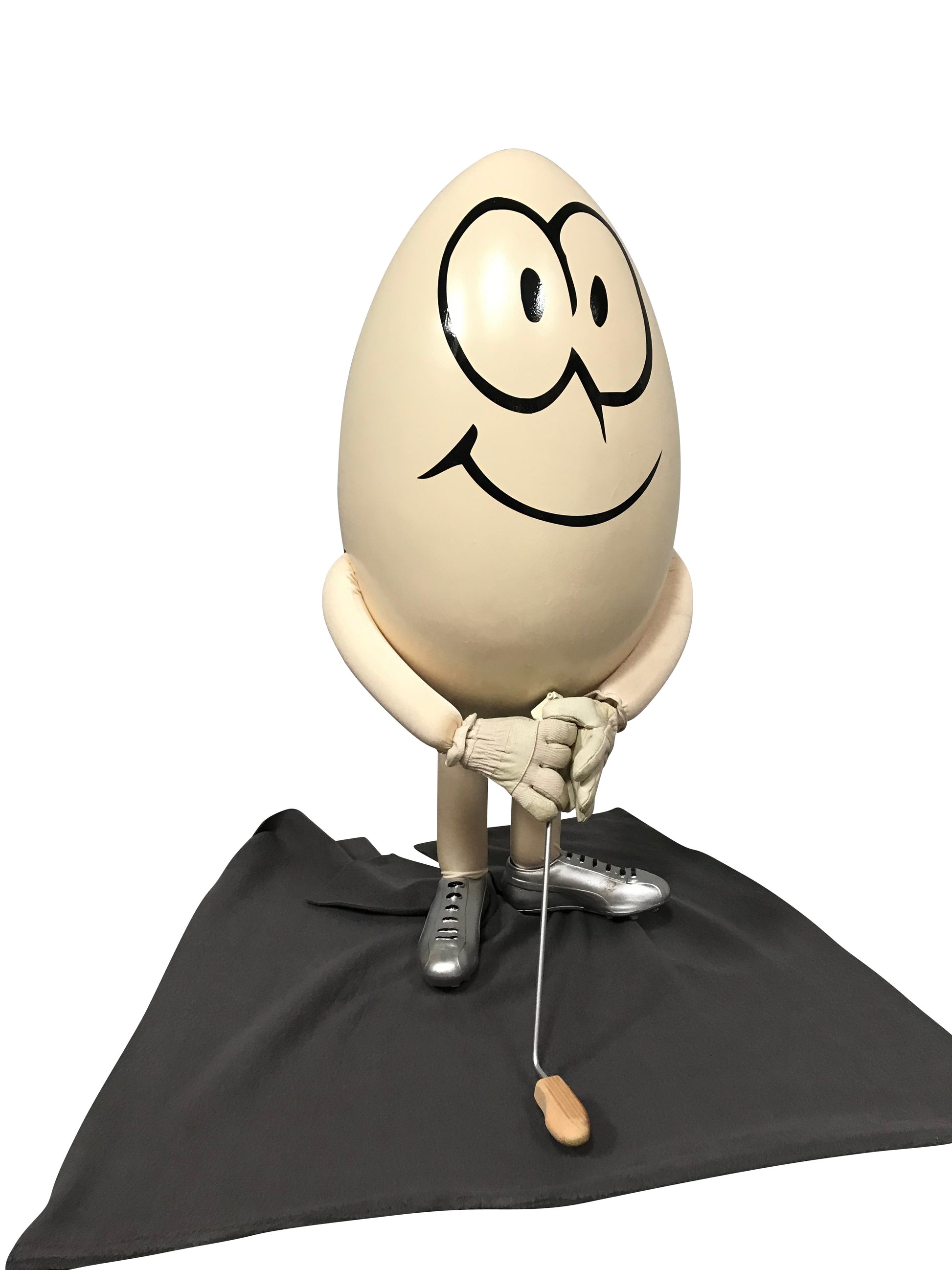 Das 80 cm hohe Ei stammt aus einer Schaustückserie. Wer sein Golfgeschäft österlich dekorieren möchte, kann dieses elektrisch bewegliche Ei sehr günstig erwerben. Auch eine Rasenfläche im Einkaufscenter, einer Galerie oder ein Messestand können mit der Figur auf witzige Art ergänzend dekoriert werden.