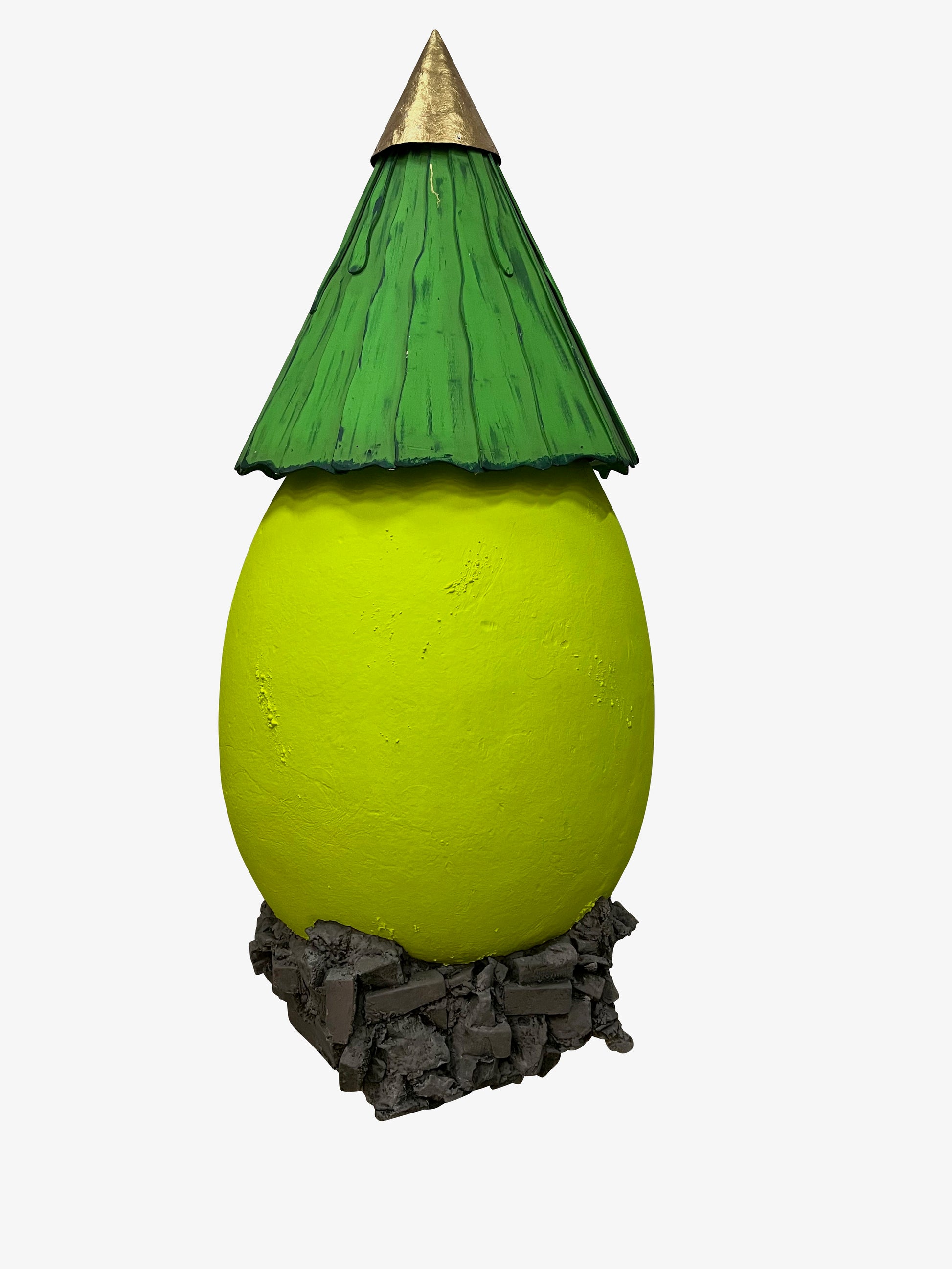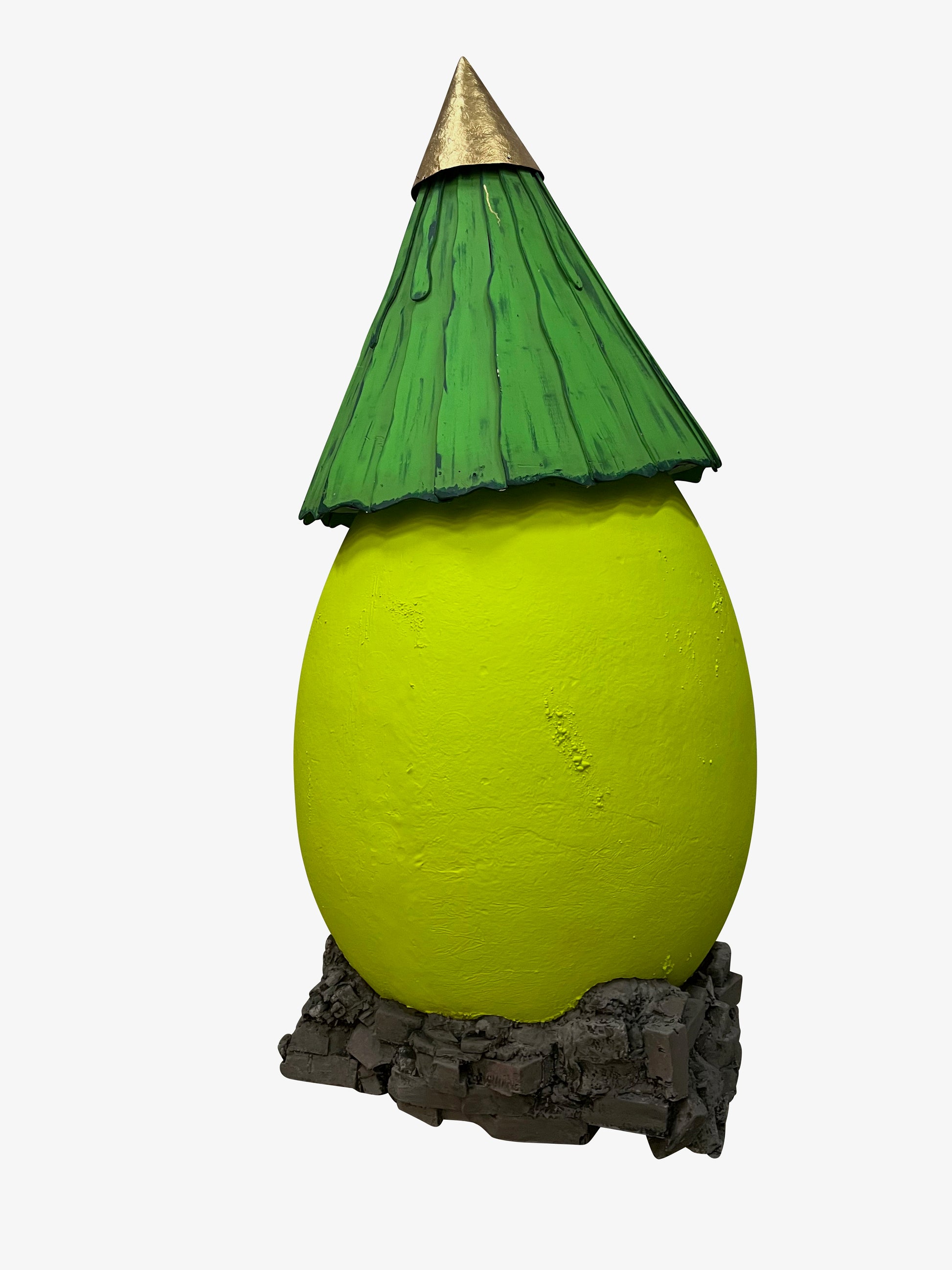 Dieses Eierhaus ist inklusive Dach 270 cm hoch. Es besteht aus GFK. Das Eierhaus ist 140 cm breit. Es wird auf einer Sonder-Palette (Grundmaße 150 x 150 cm) stehend geliefert. Das Dach besteht aus Sperrholz und ist für den Transport abnehmbar. Das Ei ist ca. 210 cm hoch.