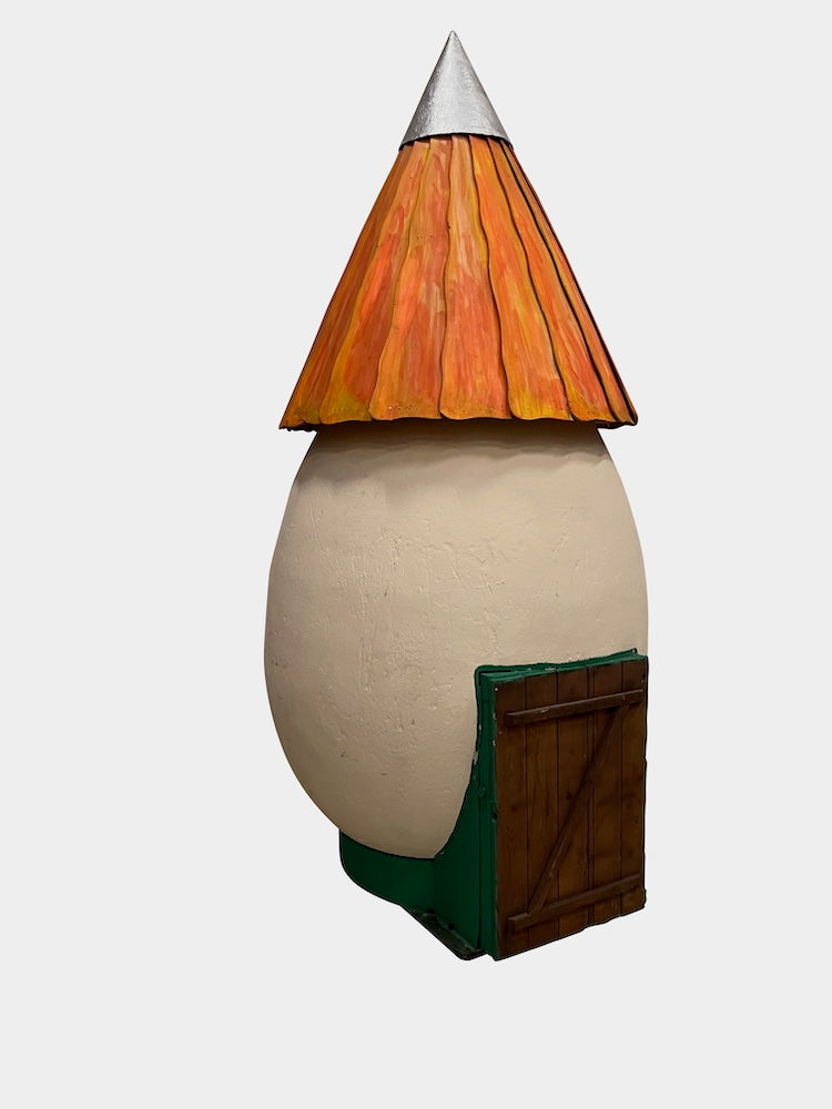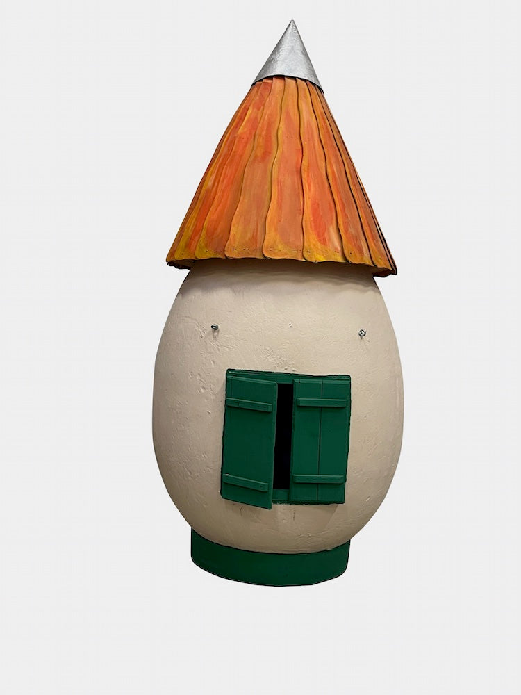Das 270 cm große Eierhaus besteht aus 2 Teilen. Dach und Ei werden jeweils auf Palette geliefert.