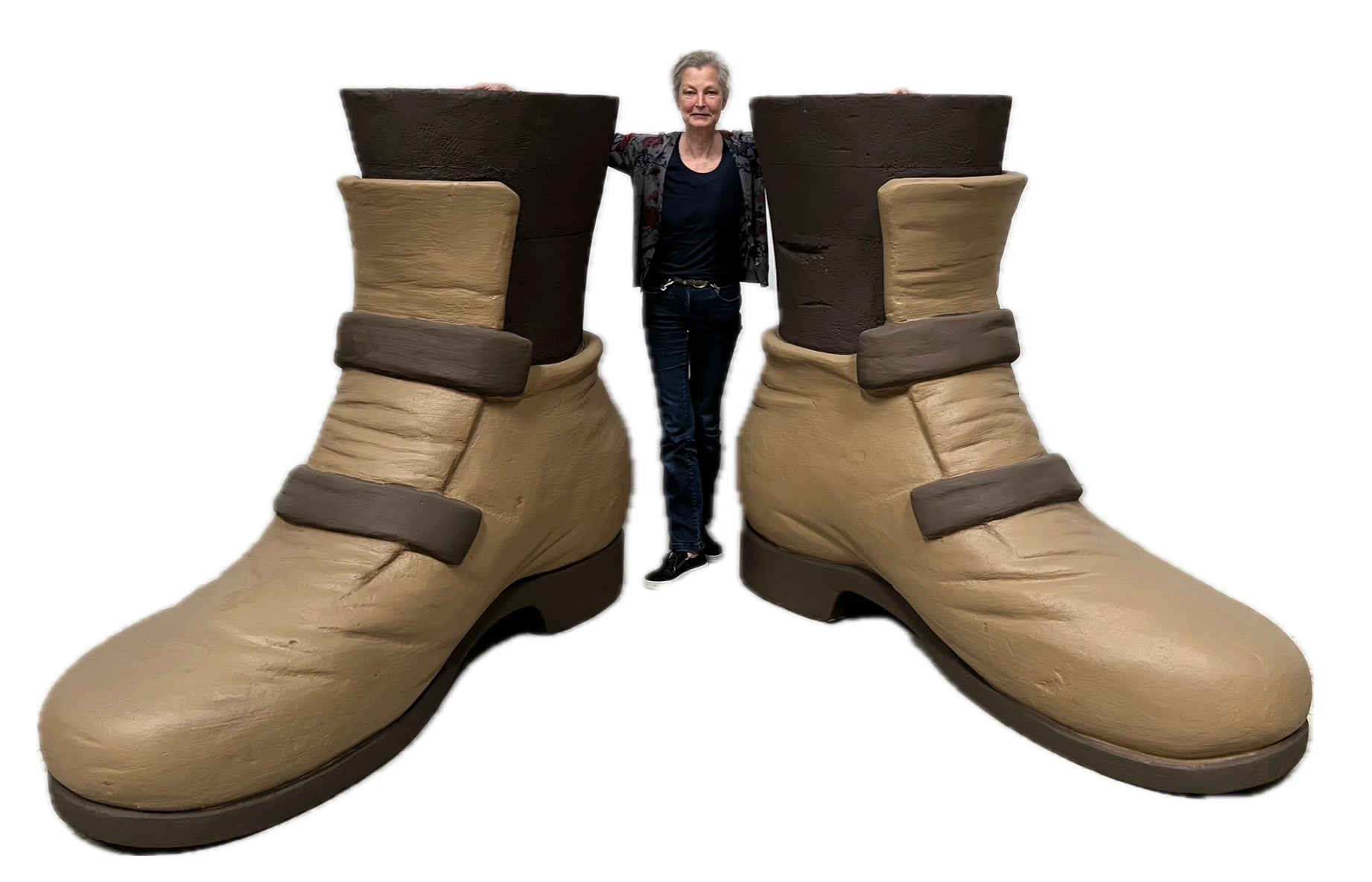 Das 175 cm große handgefertigte Stiefelpaar kann als Idealer Blickfang für Schaufenster, Aktionsflächen, Schuhgeschäfte, Märchen Dekorationen und vieles mehr eingesetzt werden.