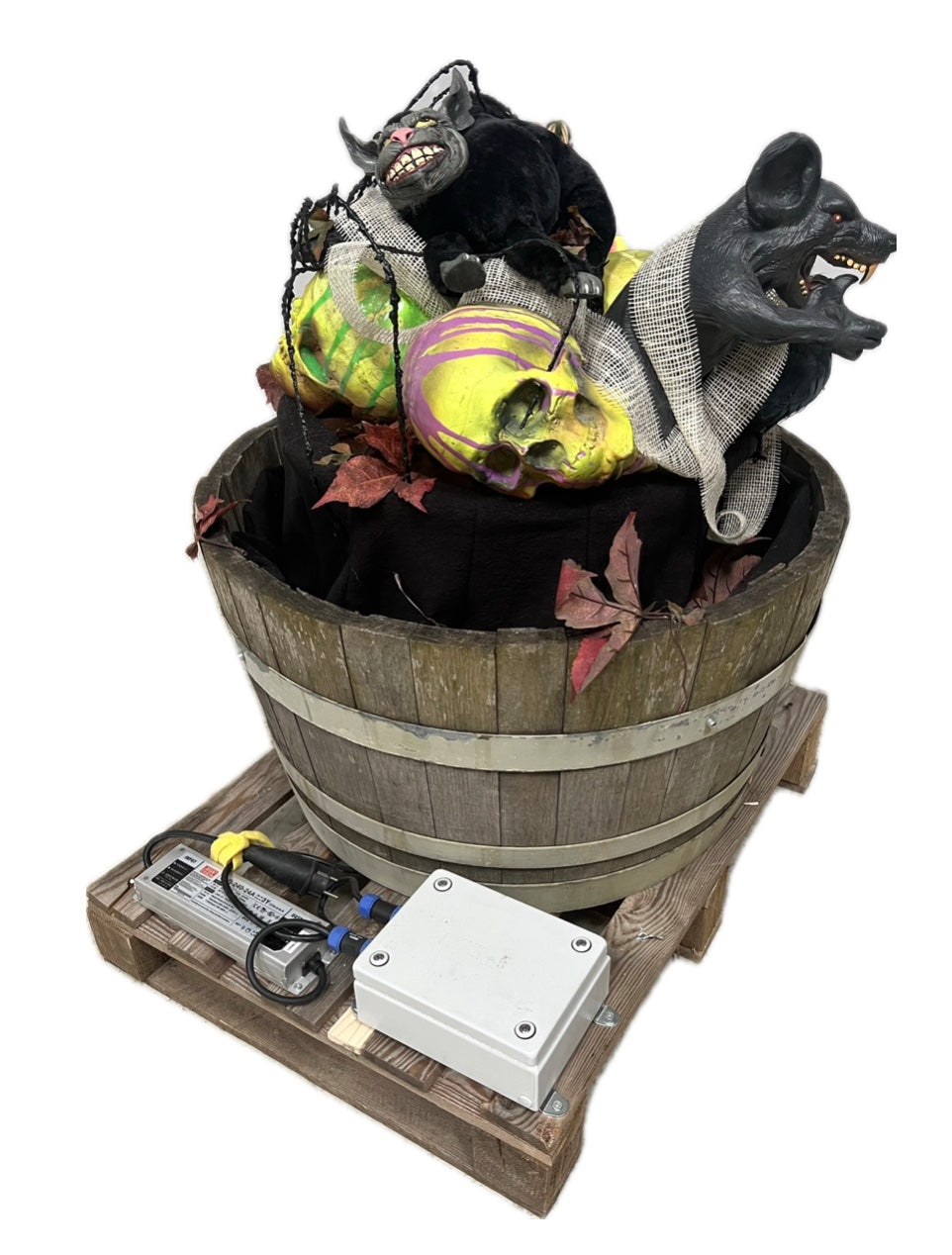Dieser Holzkübel erzeugt in jeder Halloweendekoration für eine zusätzliche Aufmerksamkeit beim Publikum.