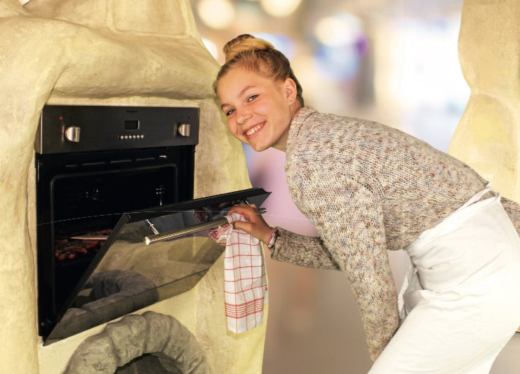 1 Backofen mit Kulisse aus A1 Acrylat. Nicht brennbar.
