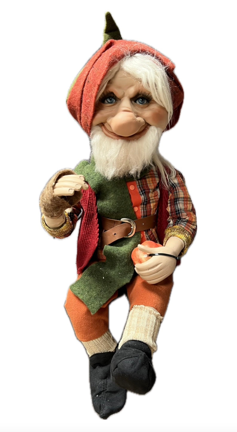 80 cm großer zwerg mit aufwendig gestaltetwer Kleidung.